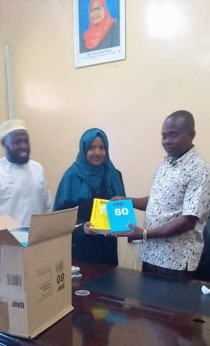 Helping doctors and medical professionals. IDO Trustee Dr. Dr Hawala Saleh (middle) together with the IDO Treasurer, Shk. Khamis Suleiman (left) presenting the medical reference books to the Ministry of Heath's Trustee officer for Pemba. The books were donated by TUHEDA as an effort to enhence the knowledge base for doctors and other medical professionals.